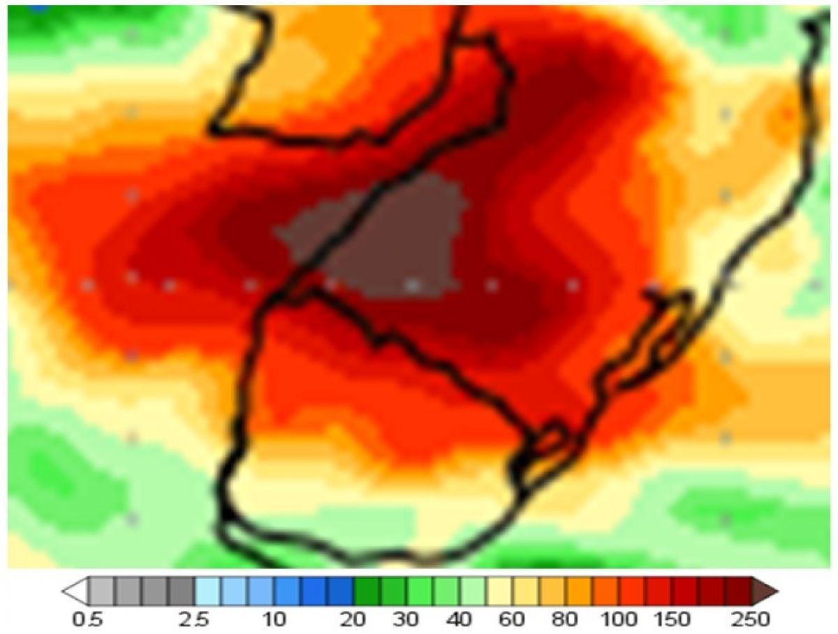 A MetSul alerta também para excessivos a extraordinários volumes de chuva nos próximos dias no Estado. Os maiores são esperados na Metade Oeste, onde podem ser registrados acumulados tão extremos como 200 a 400 mm em só uma semana e até localmente maiores, com prováveus alagamentos, inundações e transbordamento de rios e córregos. O risco de enchentes em pleno verão, o que é um fato raro, é bastante real. Muitas áreas agrícolas vão ficar inundadas com a ameaça de prejuízos para as culturas de verão.