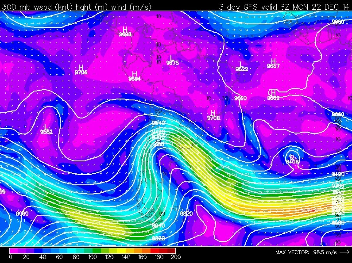Com o forte contraste térmico entre as massas de ar quente sobre o Brasil e frio vindo de Sul, a pressão extremamente baixa e o rápido deslocamento da frente fria, cresce muito o risco de temporais de vento forte (vendavais) com formação de frentes de rajadas e até supercélulas de tempestade. A presença de corrente de jato em baixos níveis poderá criar ambiente favorável mesmo a fenômenos bastante severos e muito localizados de vento capazes de gerar danos estruturais. O tempo melhora na segunda com ar seco e frio que vai garantir tempo excelente e ameno com noites frias em pleno período de Natal.