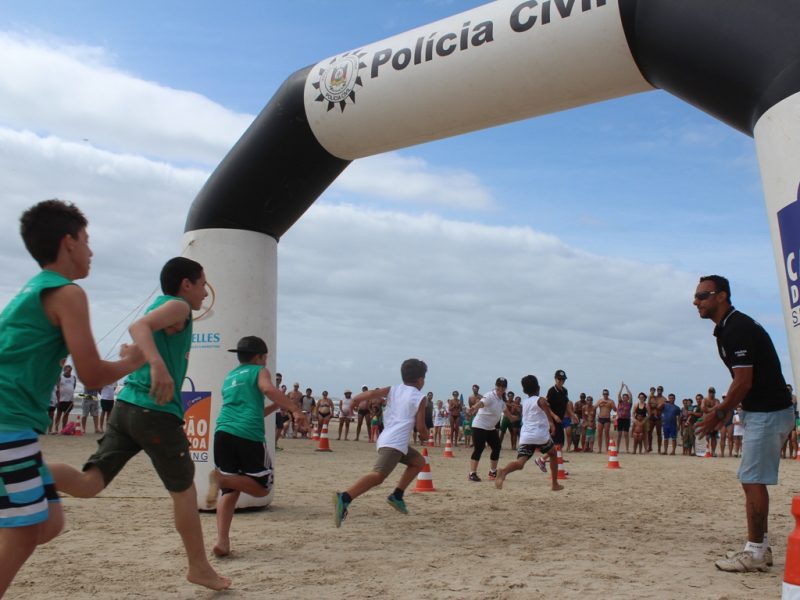 Na manhã deste domingo (03/01) a Polícia Civil realizou mais uma minirrústica infantil. O evento ocorreu na praia de Atlântida Sul. Com número recorde de público, dezenas de crianças, divididas em equipes e por faixa etária, receberam camisetas alusivas à Operação Verão da PC e do SESC. Após a corrida todas também receberam medalhas de participação.