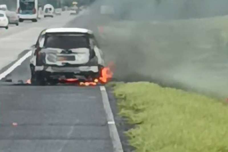 O homem teve seu carro completamente consumido pelo fogo enquanto dirigia na Freeway, no km 46, sentido Litoral/Capital.