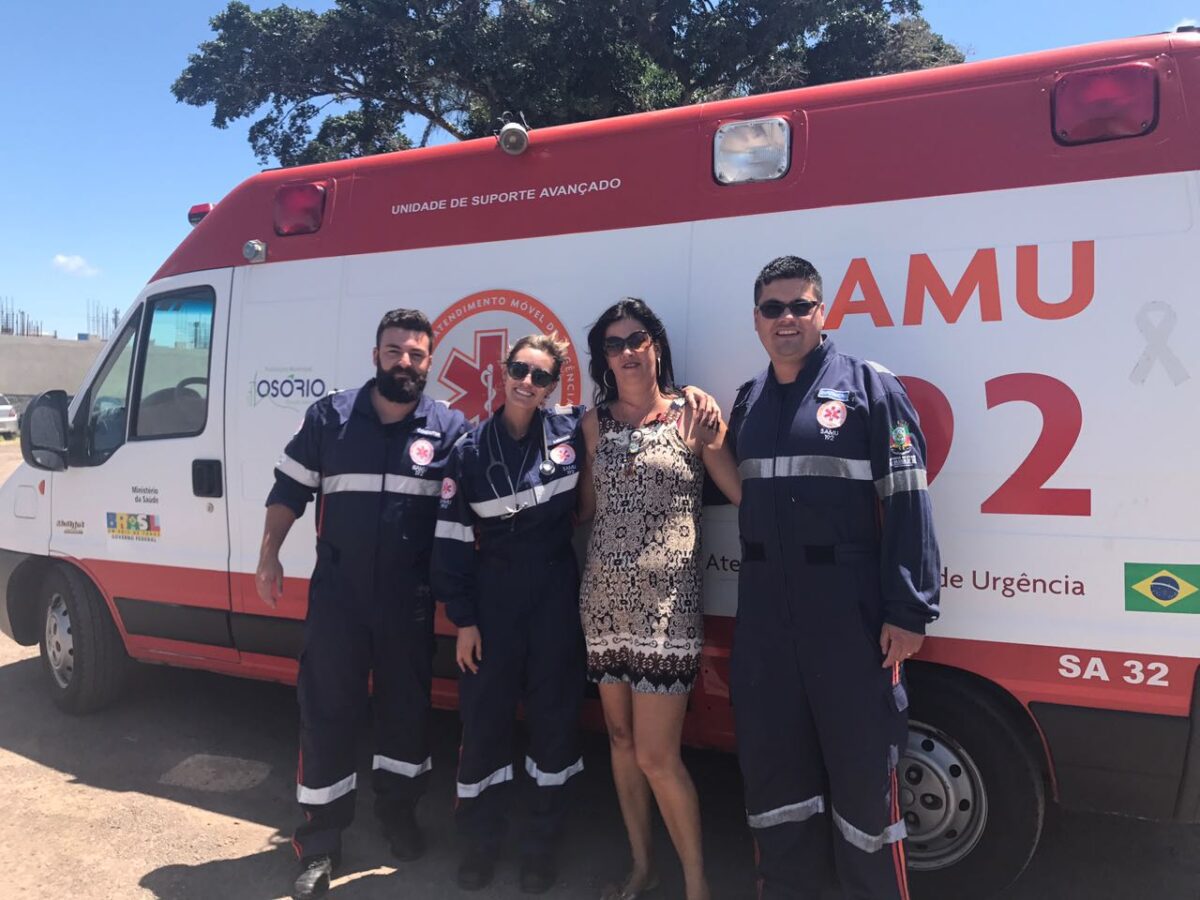 Os profissionais do Serviço de Atendimento Móvel de Urgência (SAMU 192) de Osório foram surpreendidos na tarde desta quarta-feira (7/2) com a visita e a demonstração de gratidão feita pela moradora de Santo Antônio da Patrulha, Tatiana Souza dos Santos, acompanhada de sua mãe, Marta Dias de Souza.