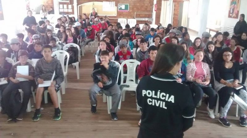 A Polícia Civil, através da Divisão de Prevenção e Educação do DENARC, realizou palestra preventiva sobre uso indevido de drogas para alunos da Escola Municipal de Ensino Fundamental Ildo Meneghetti, no município de Cidreira.
