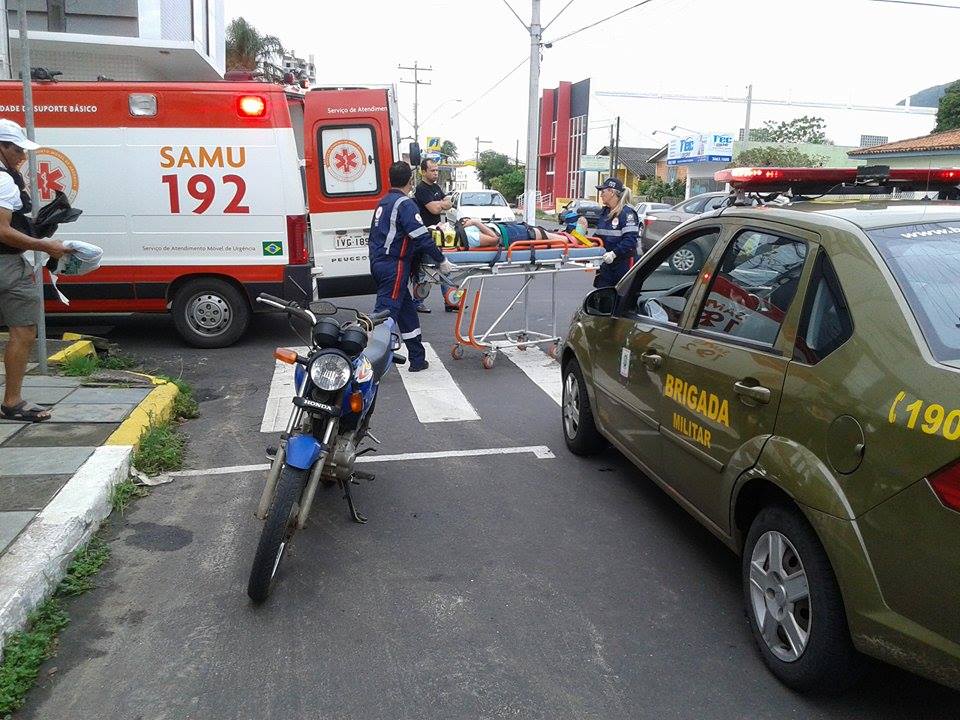 O acidente envolveu um veículo com placas de Porto Alegre e uma moto de Osório, na esquina das ruas Barão do Rio Branco e Getúlio Vargas.
