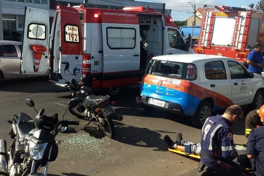 Um motociclista ficou ferido em uma colisão envolvendo sua moto e um veículo da Prefeitura Municipal de Imbé, na manhã desta segunda-feira (20), em Osório.