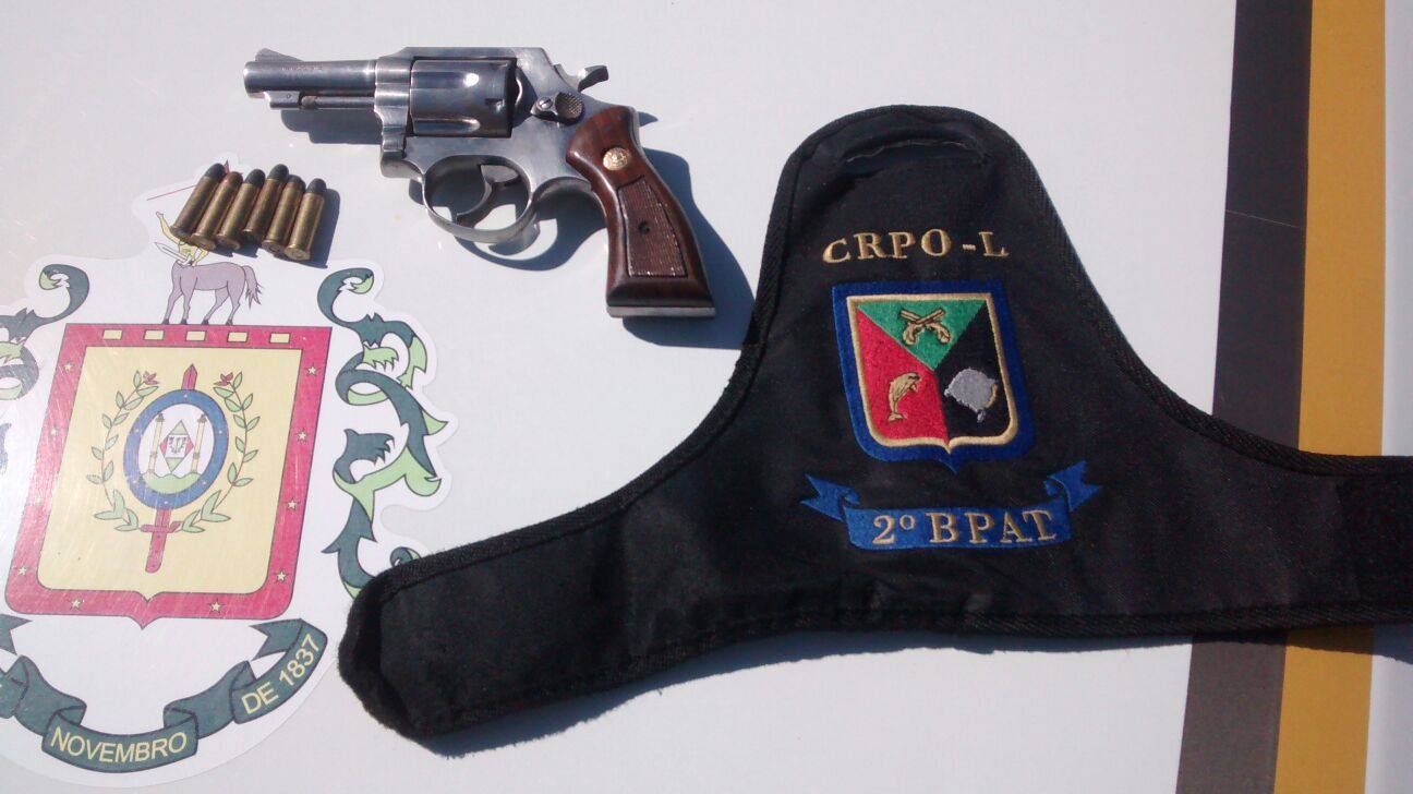 O motorista de um VW Logus foi flagrado pela Brigada Militar, portando um revólver com numeração raspada, por volta das 10h30min desta segunda-feira.