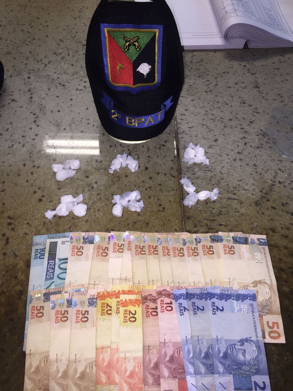 A Brigada Militar foi até o local e encontrou no carro que o suspeito conduzia, um Honda Civic, 18 petecas de cocaína e cerca de R$ 1000.