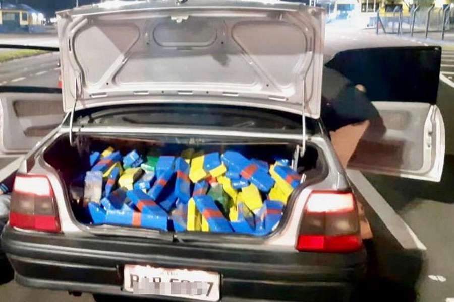 Ao abrirem o porta-malas, os PRFs encontraram 223 quilos de maconha, o suficiente para produzir quase meio milhão de cigarros para consumo.