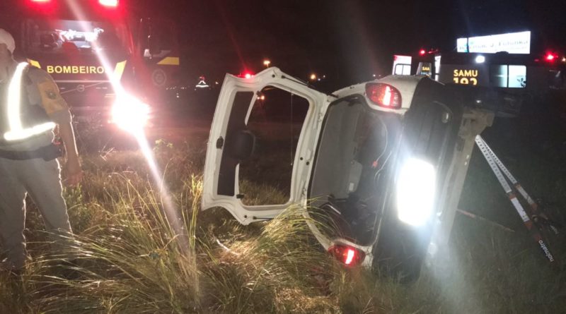 Um motorista ficou preso nas ferragens após capotar o veículo, no início da noite deste sábado (05), na ERS-786 (Interpraias), próximo ao trevo de Santa Terezinha, em Imbé.