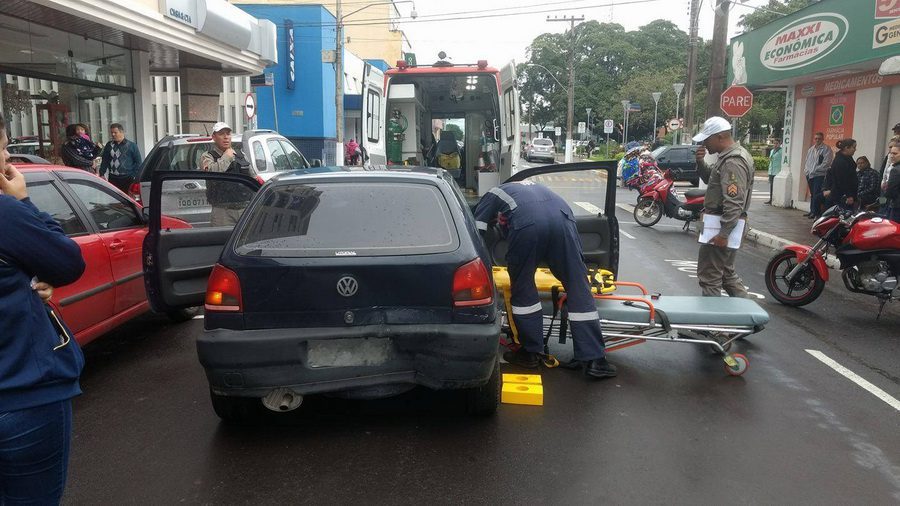 A motorista de um veículo Gol foi imobilizada pelo SAMU e encaminhada ao hospital da cidade, sem lesões graves. Ela dirigia o automóvel que foi atingido na traseira por outro carro que fugiu do local.