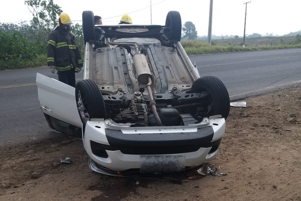 Um motorista perdeu o controle de seu veículo em uma curva e capotou, na manhã desta sexta-feira (07), em Osório.