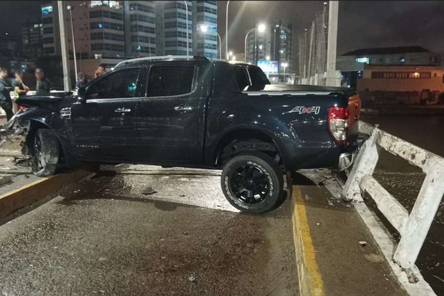Uma caminhonete bateu na cabeceira da ponte Giuseppe Garibaldi, que liga Imbé a Tramandaí, na noite desta quarta-feira (22). O veículo atingiu as muretas de concreto na entrada da travessia e depois ficou atravessado.