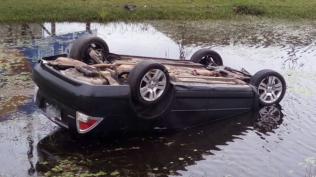 O carro com placas de Osório ficou dentro um pequeno açude, entre Rainha do Mar e Xangri-Lá.