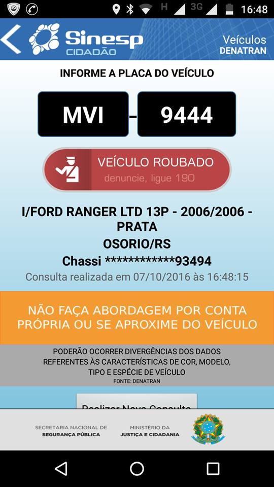 Ela estava dentro de uma caminhonete Ford Ranger, placas MVI 9444, quando dois homens, sendo um armado a atacaram e roubaram o carro. Eles fugiram em sentido ignorado.