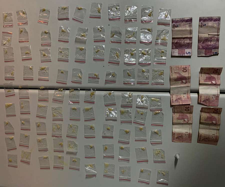 Ela carregava uma sacola e no interior dela estavam 90 porções de crack em sacos plásticos, uma porção de cocaína e R$50 em dinheiro.