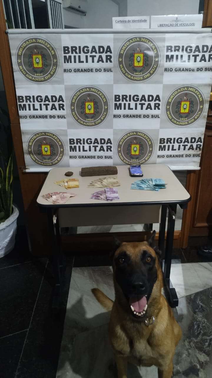 A Força Tática do 8º BPM, com o apoio do Canil do 1º BPChoque, prendeu um casal com um tijolo de maconha, na noite de sexta-feira (05), em Osório.