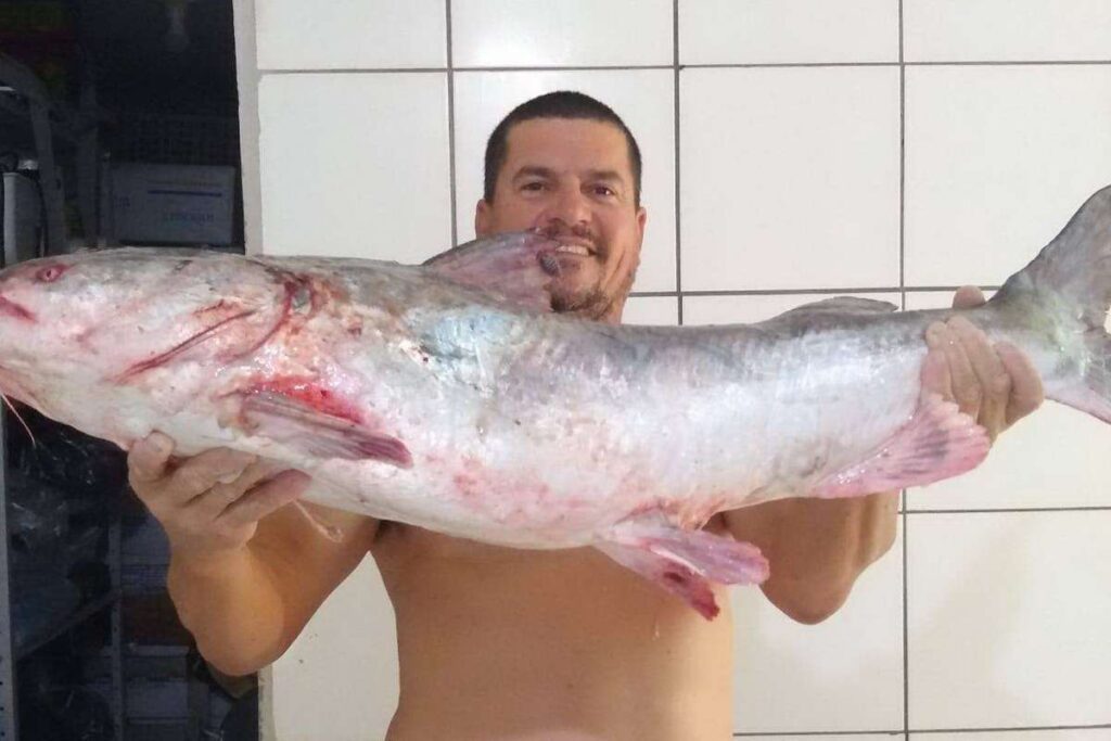 O pescador cadastrado no MOPERT, Gilson Jesus, capturou um bagre na Lagoa Tramandaí, pesando em torno de 22 quilos.