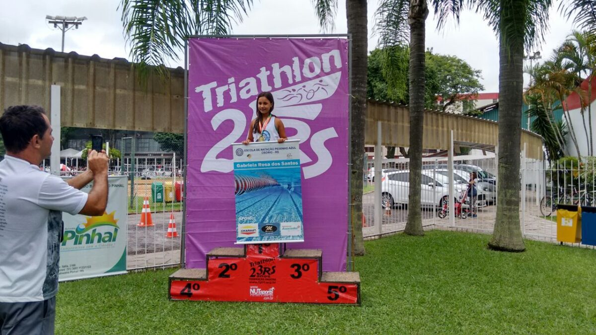 Organizado pela federação Gaucha de Triathlon (FGTRI), a competição reuniu diversas equipes de todo RS. A Escola de Natação Peixinho Azul de Osório se fez presente com quatro atletas, que nadaram 300 metros e correram 1km.