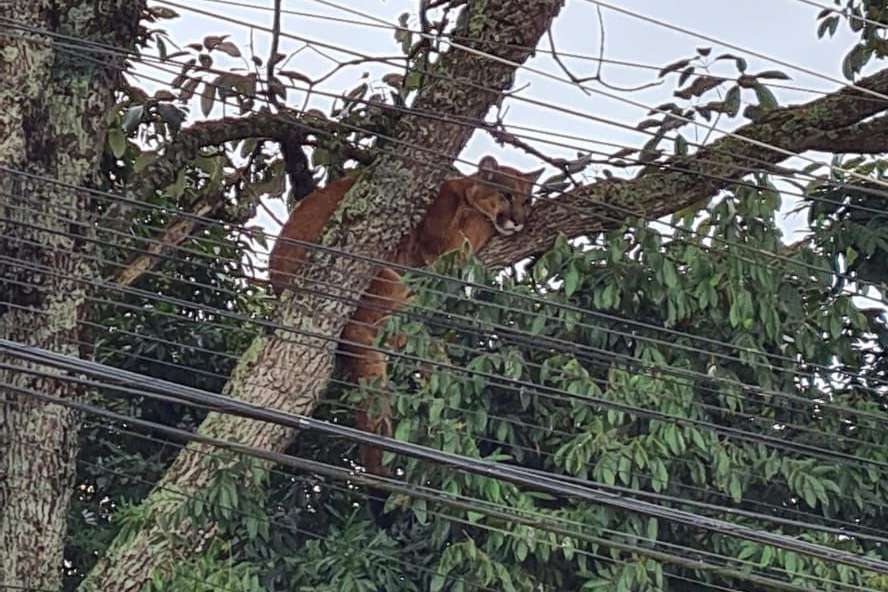 Moradores do bairro Jardim dos Pampas avistaram o felino, em uma árvore.