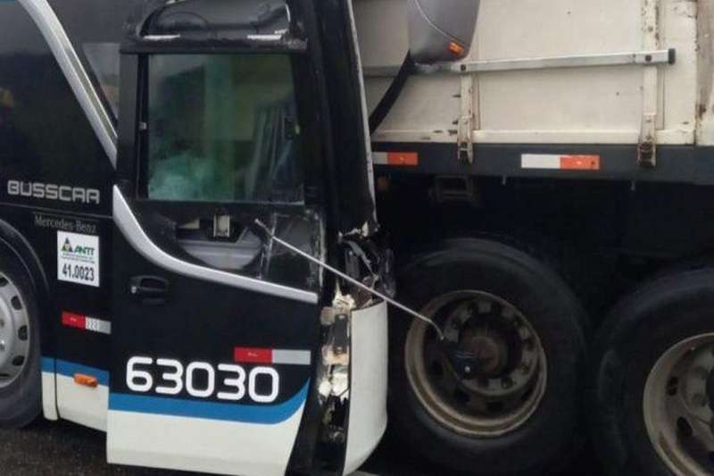O ônibus, que seguia de Porto Alegre para São Paulo, colidiu na traseira de um caminhão que transportava bobinas de aço.