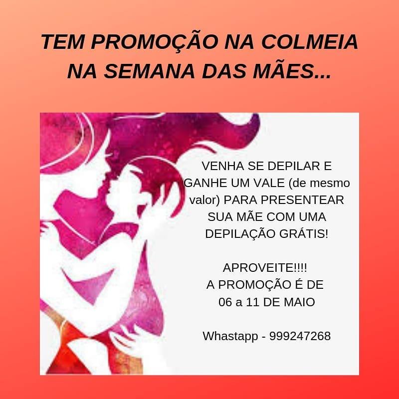 A Colmeia Depilação Expressa tem um presente para as mamães nesta semana. Ao se depilar, você ganha um vale de mesmo valor para presentear sua mãe com uma depilação grátis.