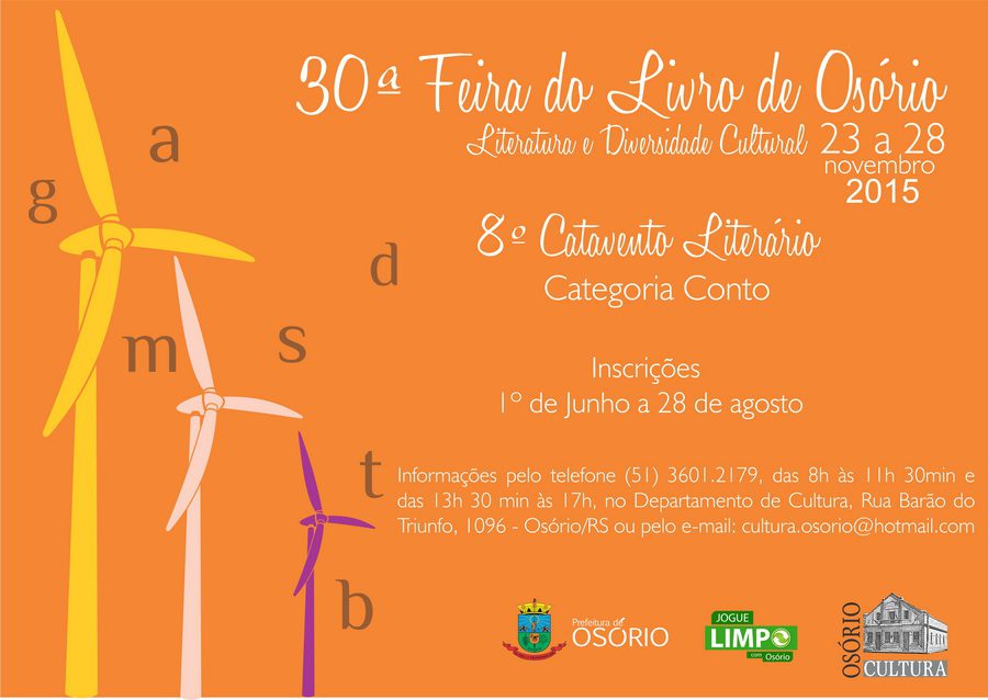 O Departamento de Cultura de Osório realiza neste ano, a 8ª edição do Concurso Catavento Literário, categoria conto. A tradicional iniciativa é uma das alternativas que os cidadãos têm de mostrar o talento e a dedicação, ao mundo literário.