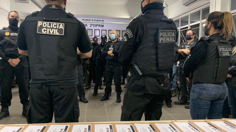 Foram cumpridos 18 mandados de busca e apreensão nas cidades de Canoas e Osório, restando apreendidos drogas e celulares. Até o momento, 05 pessoas foram presas em flagrante.