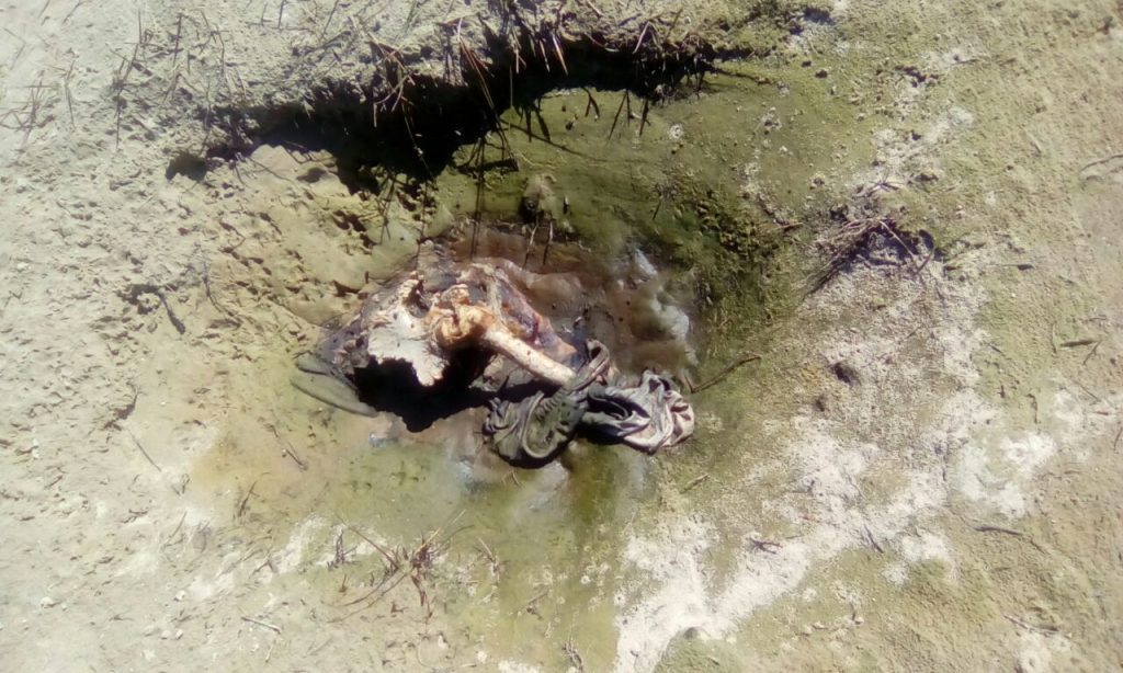 O local foi isolado e o Corpo de Bombeiros acionado para fazer a remoção dos restos mortais até o Instituto Médico Legal (IML), onde deverá ser realizado a identificação.