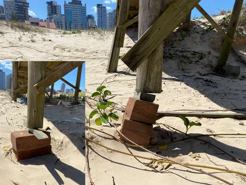 A passarela interditada em Torres, localizada em frente à Rua Osvaldo Aranha e que dá acesso à beira-mar, foi fechada pelo poder executivo em parceria com o Corpo de Bombeiros devido às precárias condições de sua estrutura.