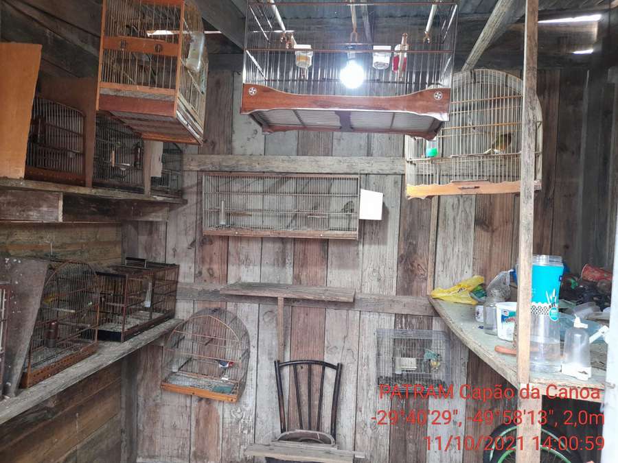 Foram localizados 17 pássaros silvestres em gaiolas e nos fundos da residência, em um galpão de madeira.