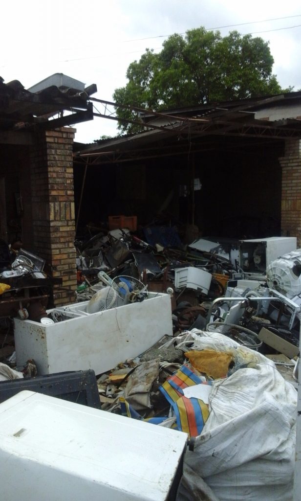 No local encontravam-se pneus, sucatas, peças automotivas, televisores e eletroeletrônicos, Latas de tinta e solvente, plásticos em geral, papéis e papelão tudo a céu aberto, exposto as intempéries.