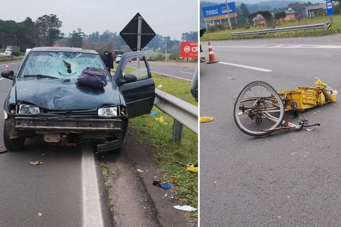 Por volta das 6h20min, um ciclista de aproximadamente 60 anos perdeu a vida ao ser atropelado por um veículo Gol com placas de Osório.
