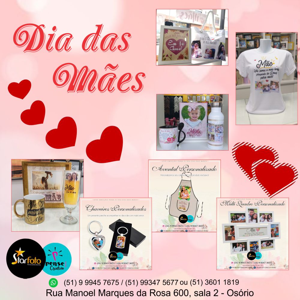 Muitas vezes ficamos na dúvida do que dar de presente para nossa mãe no seu dia não é mesmo? Pensando nisto a Star Foto/Loja Pense resolveu ajudar você nesta tarefa mostrando alguns exemplos encontrados no local.