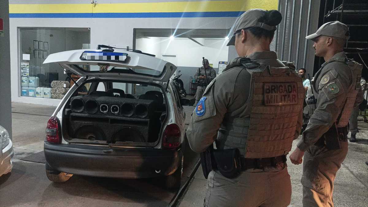 Durante a abordagem no posto de combustíveis, dois veículos equipados com som automotivo em volume elevado foram recolhidos.
