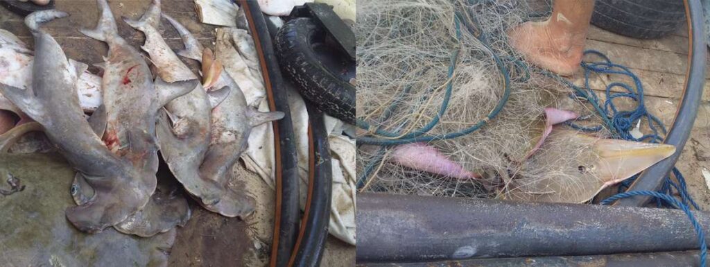 Foram apreendidos 36 peixes das espécies Arraia-manteiga, Arraia -Violas e Cação-martelo.