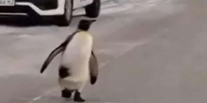 Um pinguim foi filmado caminhando pelas ruas da cidade, que está enfrentando temperaturas extremas de -20ºC.