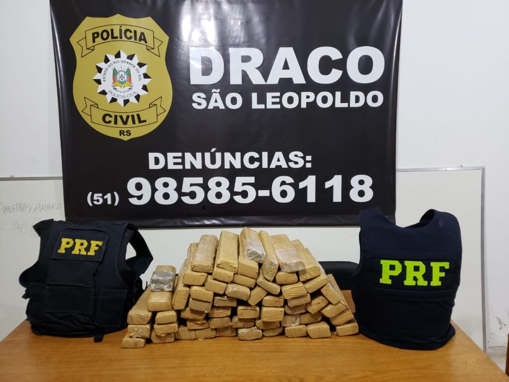 Cerca de 52,2 quilos de maconha foram apreendidos em uma operação conjunta da Polícia Civil e da Polícia Rodoviária Federal deflagrada na madrugada desta quinta-feira em Santo Antônio da Patrulha.