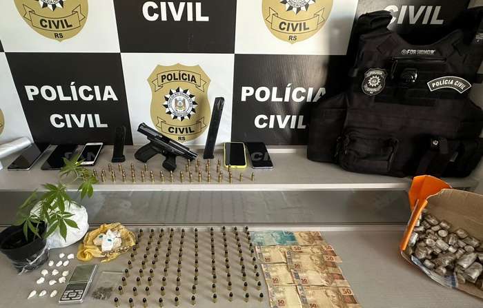 Em uma das casas, situada no bairro Humaitá, em Tramandaí, os policiais encontraram uma pistola de origem turca, equipada com três carregadores, sendo um deles com capacidade para 30 munições.
