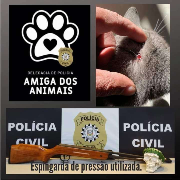 No dia 13/7/2022, no Balneário de Santa Terezinha, em Imbé, duas gatas foram atingidas na cabeça com disparos de chumbinhos.