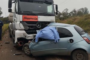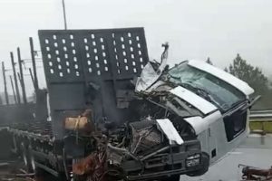Acidente entre caminhões na BR-101 em Osório causa transtornos e espalha toras de madeira pela pista 20/08/2024