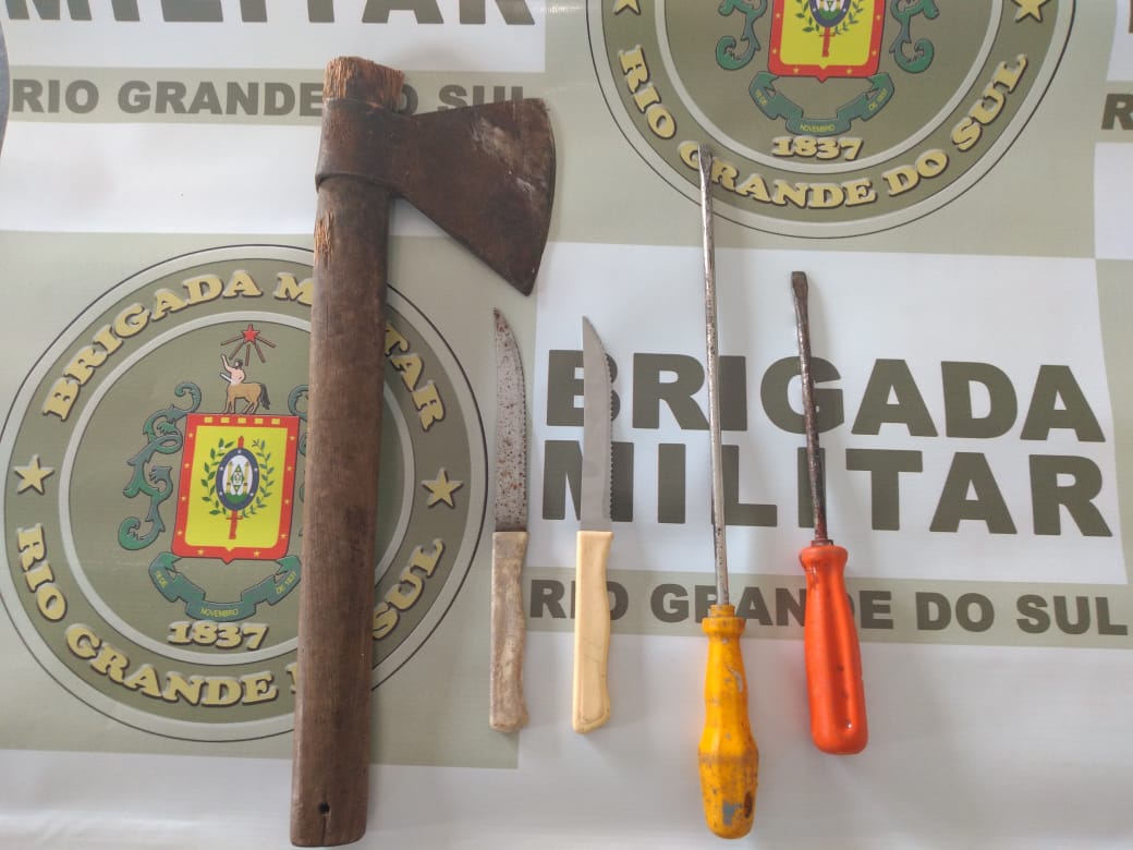 Ele havia arrombado a porta da frente usando um machadinho, duas chaves Philips e duas facas de serrinha, sendo tudo apreendido.