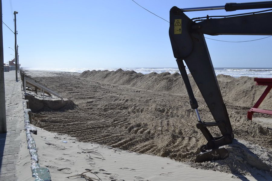 Conforme o prefeito Pierre Emerim, os trabalhos estão sendo executados por uma escavadeira hidráulica e tem objetivo de evitar que a areia da praia, conduzida pelos ventos, invada o calçadão, Avenida Beira Mar e ruas próximas.