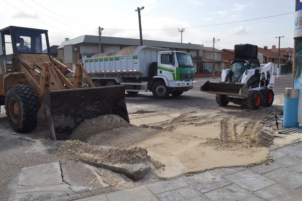 O trabalho consistiu na retirada da areia carregada pelos ventos. Caminhões, uma carregadeira e uma mini carregadeira foram utilizados para conclusão do serviço.