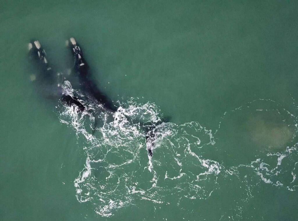 As baleias francas passam pelo litoral do Rio Grande do Sul rumo ao norte em busca de águas mais quentes para procriar e cuidar de seus filhotes.