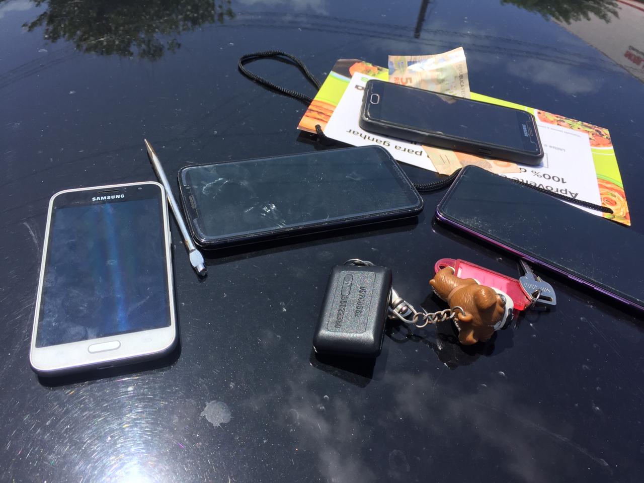 Ele estava com cinco celulares escondidos na cintura, que posteriormente foram restituídos às vítimas.