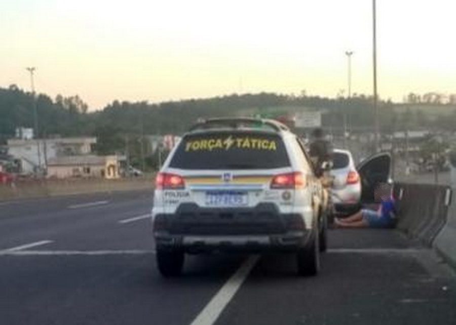 A ação teve origem em informações da PM de Santa Catarina de que um veículo Sandero, de cor prata, estaria deslocando de Tubarão/SC, no sentido Torres.