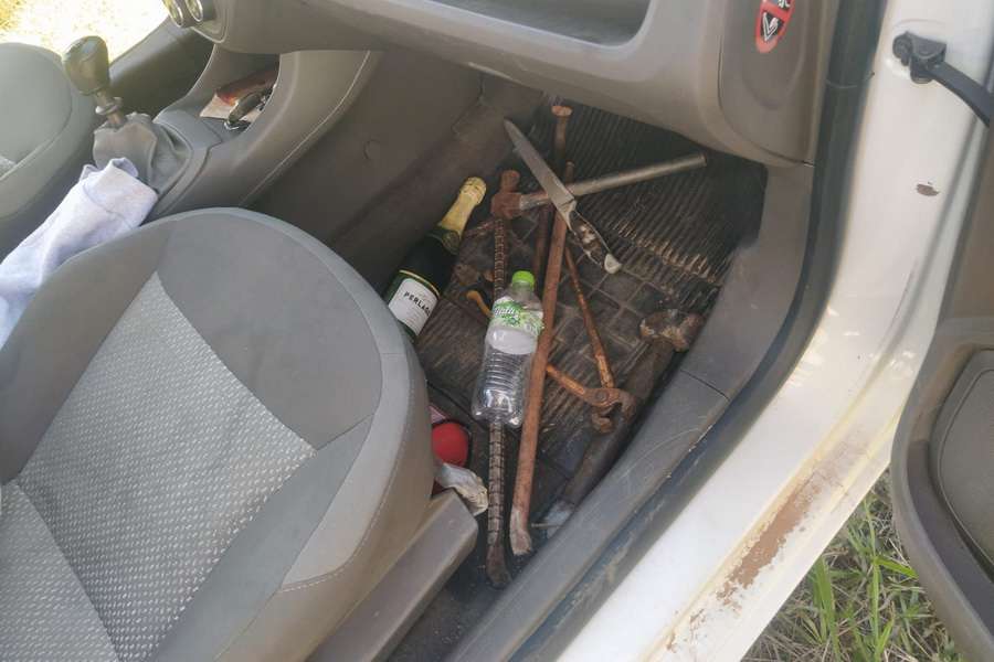 No interior do veículo, foram encontradas ferramentas, como marreta, alicates e pés-de-cabra, uma televisão 32 polegadas e três celulares.