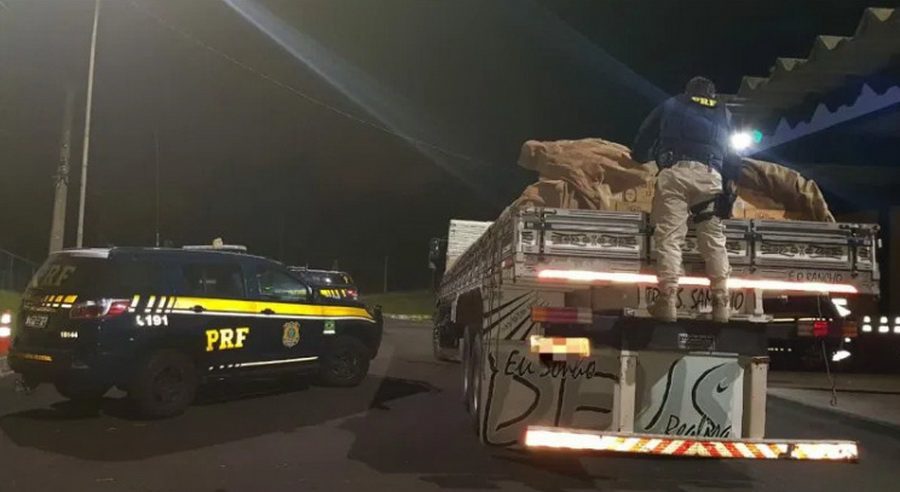 Durante ações de combate ao crime, os policiais rodoviários federais abordaram um caminhão com placas de Witmarsum/SC que seguia em direção a Santa Catarina.