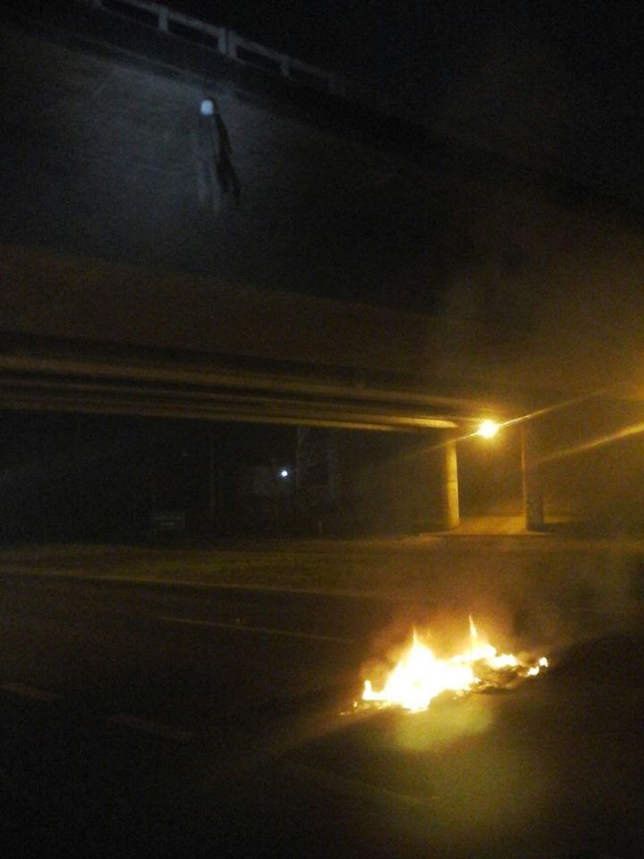 Pneus também foram queimados na rodovia em manifesto contra o parcelamento de salários do governo estadual.