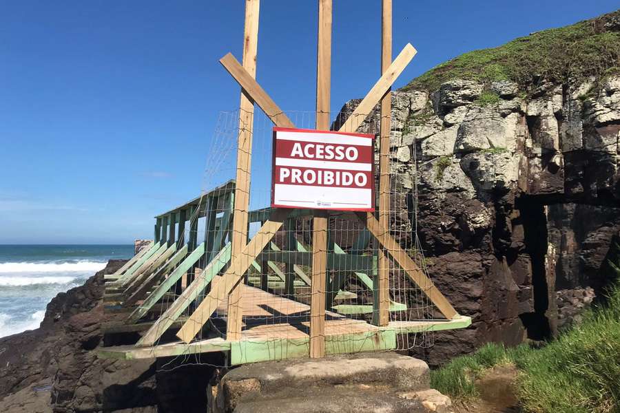 Outro local que a Defesa Civil bloqueou o acesso é conhecido como uma grande passagem feita pelo mar onde foi construída a “pontezinha” de madeira aos pés do Morro das Furnas.