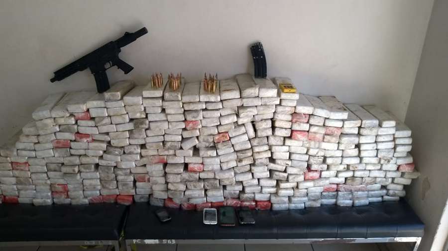 Após a prisão, foram localizados 220,3 quilos de maconha no interior do imóvel, um fuzil calibre 556, um total de 50 tipos diferentes de munição e carregadores.